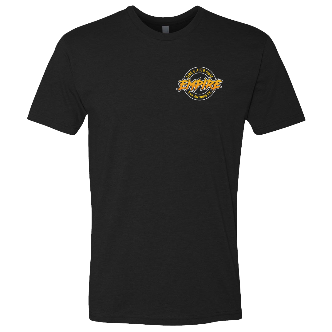 The 210 Burnout Trucks shirt with the Empire Tire and Auto Shop signature competition truck illustration is a San Antonio land mark or trend setter. We burn rubber to mark the roads and lay the tire tread to set the tone in competition. We are your San Antonio performance tire and auto shop.